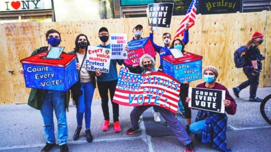 «Мы юридически оспорим все недавние штаты, на которые претендует Байден, за мошенничество на выборах и мошенничество на выборах на уровне штата». Трамп подозревает массовые фальсификации при голосовании по почте – благодаря бюллетеням, которые продолжают приносить в избиркомы почтальоны, победа уплывает из рук. «Любой голос, который был отдан после дня выборов, не будет учитываться!» – грозится президент.