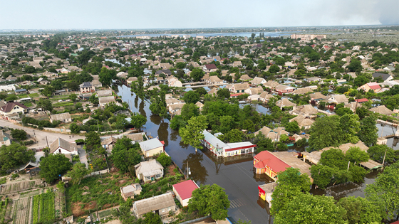После подрыва плотины на ГЭС полностью затопило три населенных пункта в Новокаховском городском округе. В Днепр после прорыва станции попало 150 тонн машинного масла. Международный комитет Красного Креста (МККК) счел разрушение одним из самых значительных повреждений гражданской инфраструктуры с февраля 2022 года.