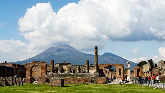 Везувий можно назвать одним из самых известных вулканов античности. Он находится на юге Италии, примерно в 15 км от Неаполя. Согласно исследованиям, он образовался 25 000 лет назад в результате столкновения двух тектонических плит. В 79 году н.э., в эпоху расцвета Рима, Везувий уничтожил сразу несколько городов — Помпеи и Стабии были засыпаны вулканическим пеплом, местами толщиной до 8 м, а Геркуланум — грязевыми потоками из-за дождя, сопровождавшего извержение. Трудно представить каким бы был ущерб, если подобное извержение произошло сейчас. На сегодняшний день более 3 млн человек живут в окрестностях вулкана