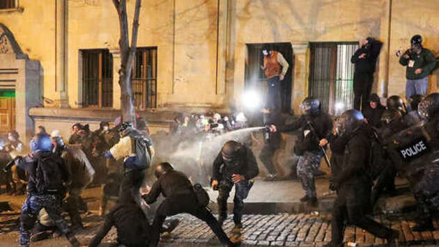 В Тбилиси сотрудники спецназа полностью освободили от митингующих площадь перед парламентом страны, передает ТАСС. По словам корреспондента агентства, это место заняли сотрудники правоохранительных органов, в то время как протестующие переместились выше по проспекту Руставели, построили баррикады и подожгли мусорки и стулья. Периодически полицейские бросают в их направлении дымовые шашки и пускают слезоточивый газ. С 28 ноября в столице Грузии идут протесты против решения властей о приостановке до 2028 года переговоров о вступлении страны в Евросоюз. Для разгона демонстрантов полиция применила водометы и слезоточивый газ. Есть задержанные, пострадали участники акции, журналисты и полицейские. Оппозиция обещает продолжать борьбу, а Европарламент выступил с критикой в адрес правительства республики. Вечером 29 ноября демонстранты в центре Тбилиси применили против полиции краску и пиротехнику, а к зданию парламента прибыл спецназ с водометами и спецтехникой.