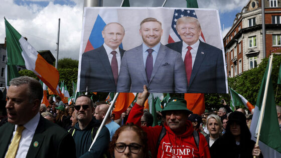 Ирландцы устроили в Дублине шествие против мигрантов с портретами президента РФ Владимира Путина и президента США Дональда Трампа, а также ирландского бойца смешанных единоборств Конора Макгрегора. Об этом пишет Irish Examiner.