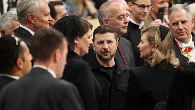 Владимир Зеленский и Дина Болуарте вместе с другими мировыми лидерами прибыли сегодня в Ватикан на церемонию интронизации нового Папы Римского. Российскую делегацию возглавил посол России в Ватикане Иван Солтановский.
