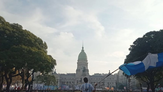 К уже ставшей традиционной демонстрации пенсионеров, проходящей у здания Конгресса каждую среду, присоединились медики и представители различных профсоюзных движений.