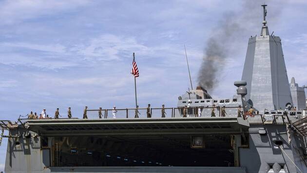 «Два источника, осведомленные о ходе развертывания и говорившие на условиях анонимности, сообщили, что корабли USS San Antonio, USS Iwo Jima и USS Fort Lauderdale движутся к побережью Венесуэлы и на их борту находятся 4,5 тысячи американских военнослужащих, в том числе 2,2 тысячи морских пехотинцев», — отмечает телеканал.
