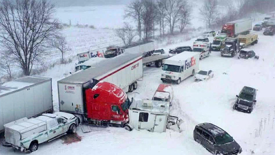 Крупная автоавария на северо-востоке США. В штате Мичиган столкнулись более 100 машин. Причиной стали сложные погодные условия - снегопад и гололед. Видимость на дорогах упала почти до нуля.