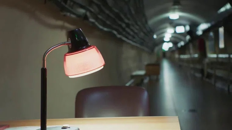 На кадрах, выложенных в telegram-канале, видно, что пол в узких коридорах подземного комплекса покрыт длинным сине-желтым ковром. Двери на объекте открываются с помощью электронных пропусков. Там же в бункере есть кабинет не только для президента, но и для представителей Кабинет министров и аппарата Верховной Рады.